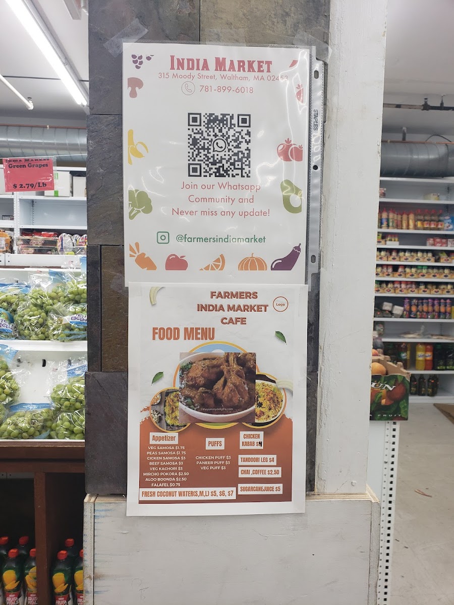 The menu at Waltham India Market primarily features a variety of grocery items with a focus on Indian, African, and Asian food products. It includes fresh produce available on the lower level, with selections spanning fruits, vegetables, and other market essentials. Alongside fresh groceries, there is a range of packaged foods and spices common to Indian and Asian cuisines.
